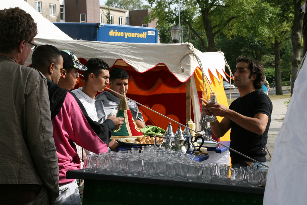 Deze opening vond plaats op een grasveld aan de Van der Pekstraat. Het trapveldje was met vlaggen, tenten en een podium omgetoverd tot feestlocatie. De organisatie wist het multiculturele karakter van de buurt te vangen met heerlijk Arabisch, Marokkaans, Hollands, Oosters, Turks en Surinaams eten en drinken. Ook waren er diverse loungeplekken: strak witte proseccobar, bruine bierbar, bike lounge met limonadewaterval voor de kinderen, Zuid-Amerikaanse jungle lounge bar en een Arabische tent. Deze diversiteit aan sferen en culturen zette de gemoedelijke ambiance meteen goed neer. Het was een smeltkroes. Helemaal Amsterdam-Noord.