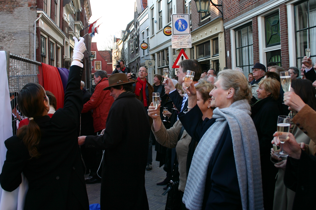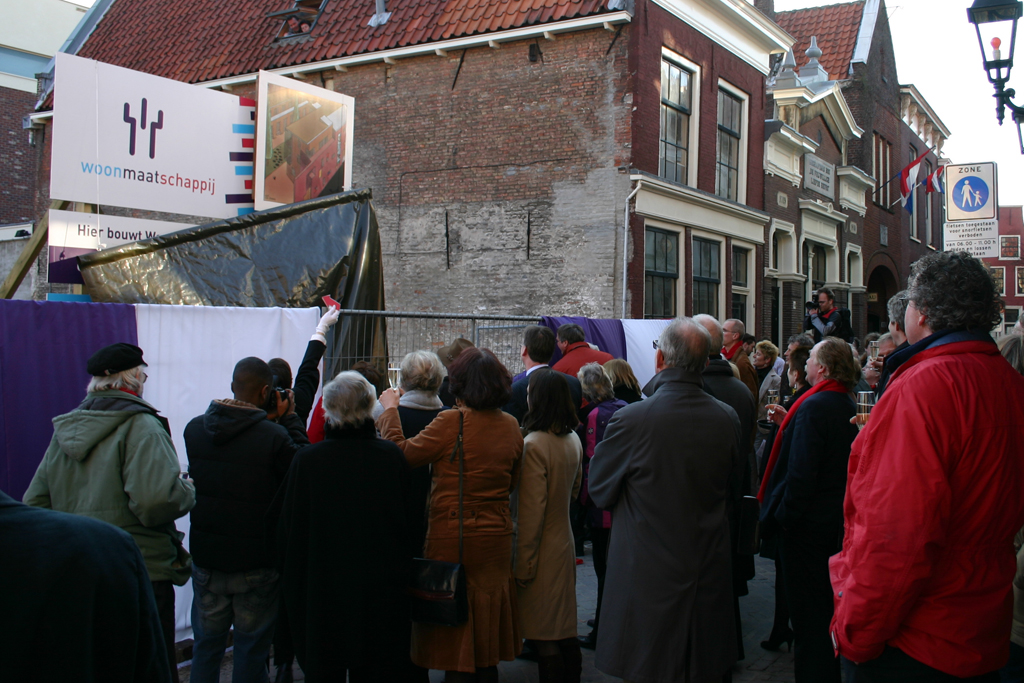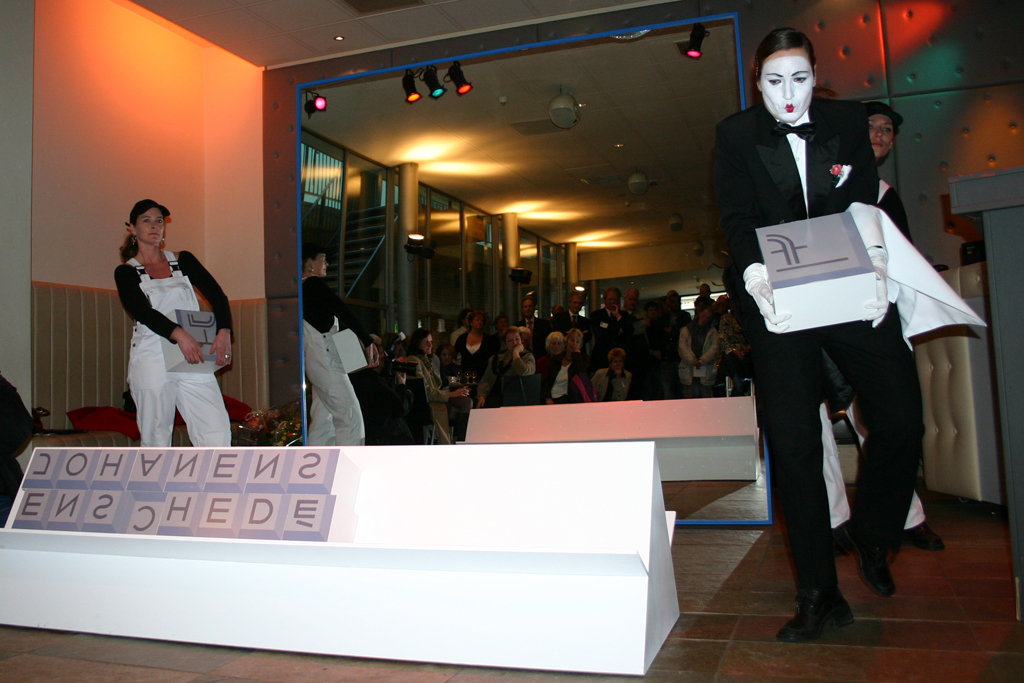 Opdracht: Bedenken, creëren en uitvoeren van de feestelijke start van de werkzaamheden aan het Johannes Enschedé Hofje in Haarlem. Een mimespeler onthulde samen met de oudste bewoonster van het aangrenzende Hofje van Bakenes de naam van het nieuwe hof: Johannes Enschedé Hof.