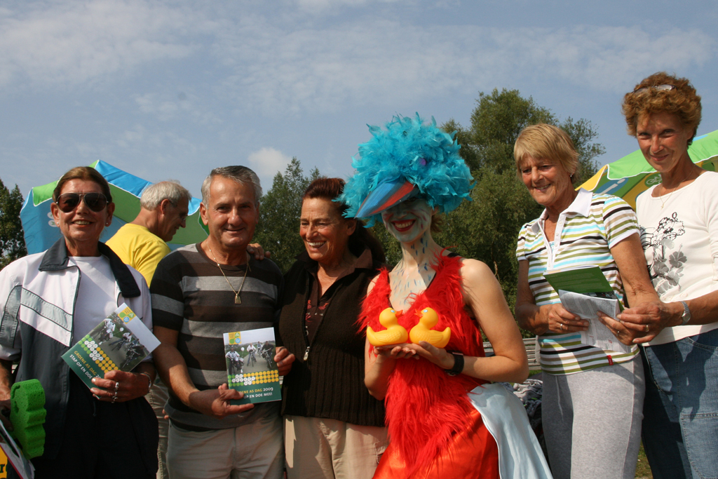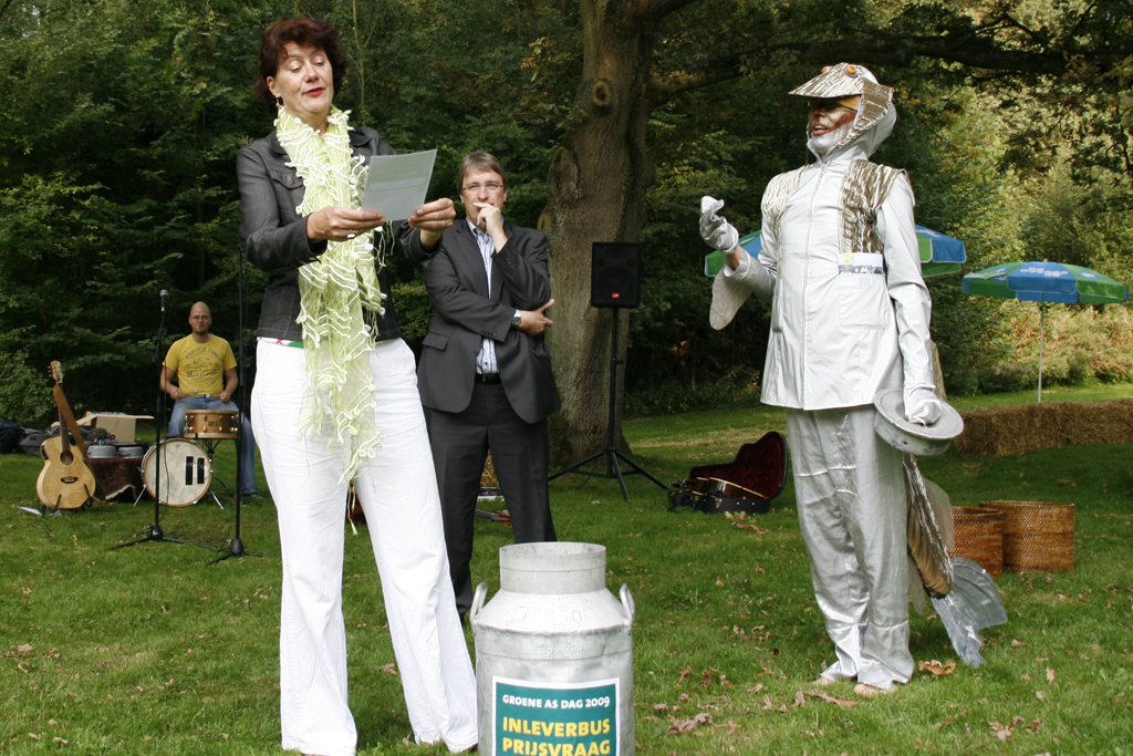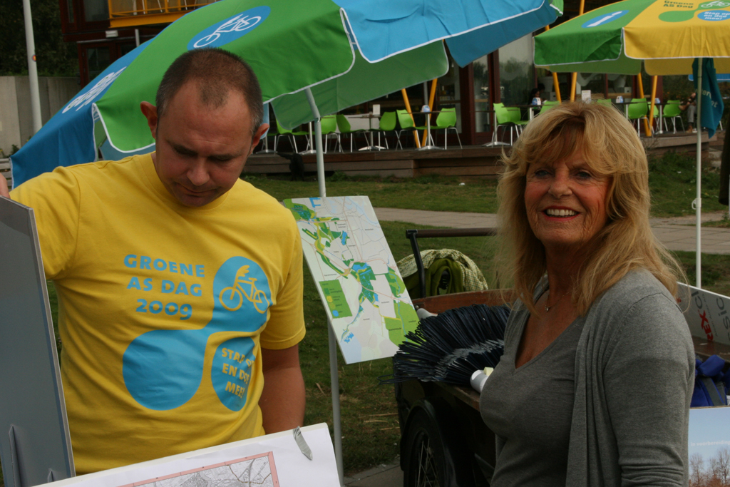 Van 10.00 tot 16.00 uur stond bij het pontje Nieuwe Meer in De Oeverlanden een informatiepunt van de Groene AS. Hier kwamen honderden fietsers langs om informatie over de Groene AS tot zich te nemen. Ook konden de deelnemers meedoen met een prijsvraag waarmee een gps-systeem voor fietsers en wandelaars kon worden gewonnen. Tijdens het feest bij de Zuidelijke Oeverlanden - Nieuwe Meer trokken wethouder Vos en gedeputeerde Meerhof uit de goede oplossingen de winnaar van deze Etrex Legend. Ook werden troostprijzen uitgereikt: Groene AS broodtrommels. In totaal hebben zo’n 1.000 tot 1.500 fietsers de Groene AS fietsroutes gefietst.