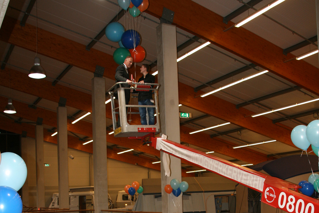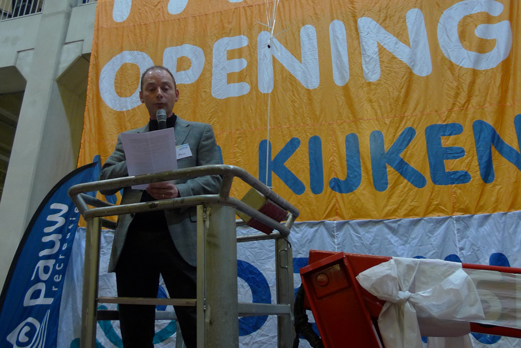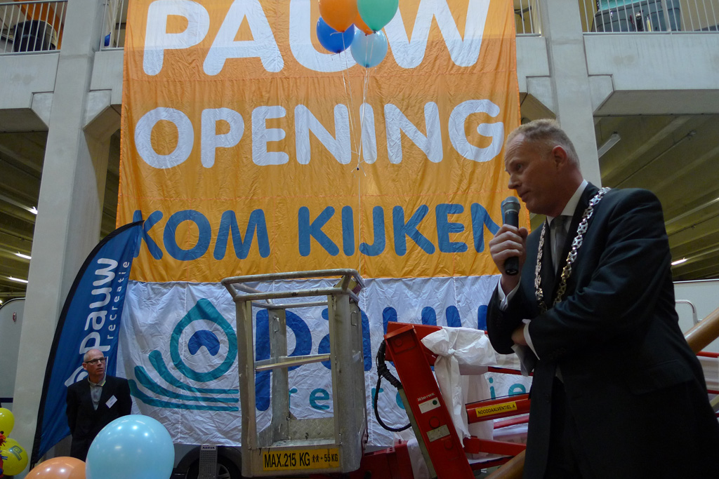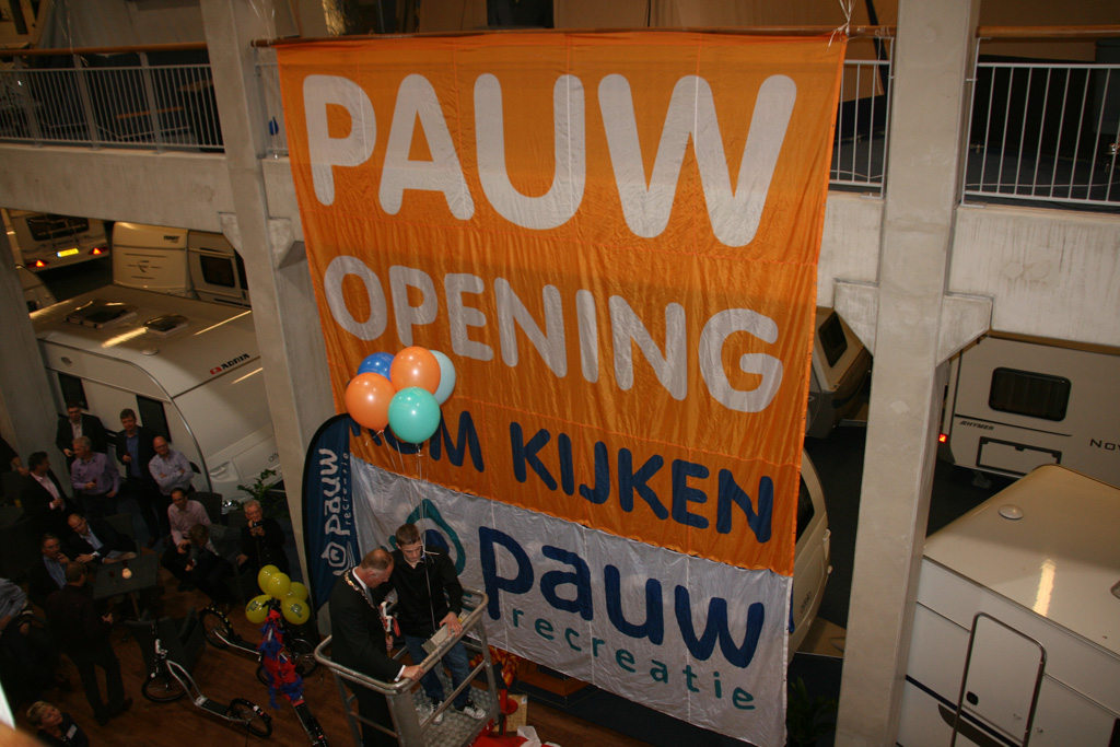 Aanschouwd door 500 gasten prikte burgemeester Han ter Heegde van Heerhugowaard samen met Jeroen Pauw, de derde generatie van de familie Pauw, enorme ballonnen in de huisstijlkleuren blauw en turkoois door. Zij deden dat vanuit een hoogwerker. De zee van confetti dwarrelde over de gasten en zo werd onder luid gejuich de kampeerwinkel officieel geopend.