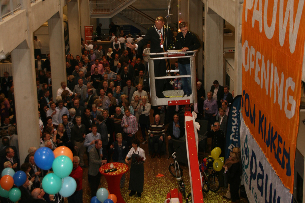 De openingsact op 15 meter hoogte, in de nok van het gebouw was spraakmakend. Hiermee werd een bijzonder element van het gebouw, ontworpen door Breddels Architecten, benadrukt. In de lengte wordt het pand namelijk doorsneden door een 15 meter hoge corridor. Van daaruit zijn alle afdelingen bereik- en zichtbaar en worden zij voorzien van daglicht.