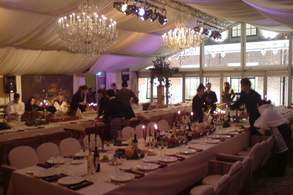 Aangrenzend aan de Stadtstimmerwerf was een grote tent met een vloeroppervlakte van 12x15 meter geplaatst. Deze tent was robuust en authentiek ingericht met vier grote kroonluchters, grote en krachtige stillevens van Jan de Heem (1606-1684) en meubilair van steigerhout. De copieuze aankleding sloot goed aan op de prachtige en rijke historie van de Stadtstimmerwerf. Tussen 1600 en 1800 had de Stadtstimmerwerf een belangrijke en centrale plaats in de economische bloei van Alkmaar.