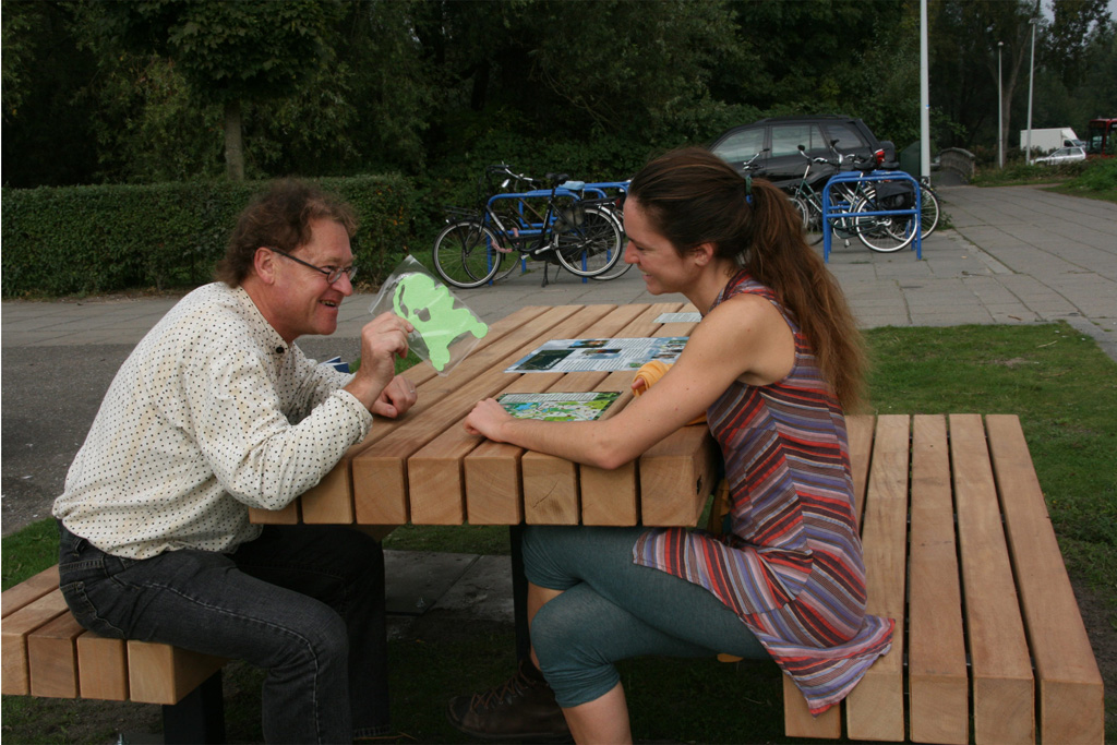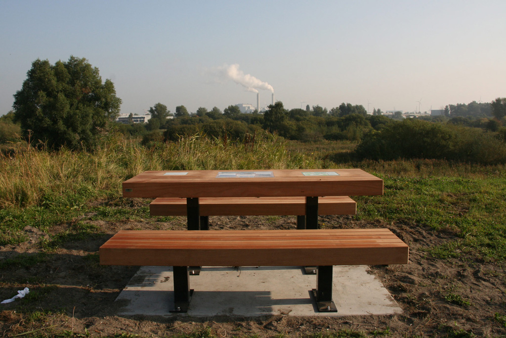 Opdracht: Elf informatieve en uitnodigende recreatiepunten verzorgen in de Groene AS, een ecologische verbinding tussen Amstelland en Spaarnwoude. Wandelaars, fietsers en andere recreanten kunnen uitrusten en genieten van de natuur. In de recreatietafels zijn informatiepanelen verwerkt over de omgeving en de Groene AS.
