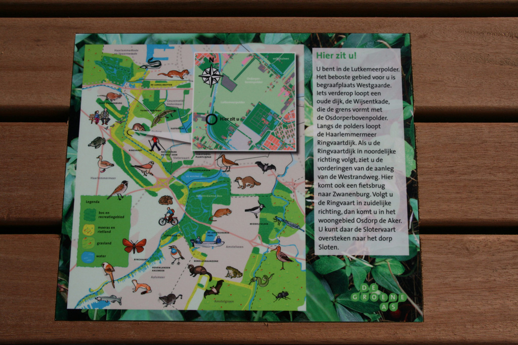 Tussen Amstelland en Spaarnwoude wordt de ecologische én recreatieve verbindingszone Groene AS gerealiseerd. In deze zone zijn elf houten picknicktafels geplaatst met daarop informatie over de Groene AS. TdH Spatial Concepts ontwierp en realiseerde de informatievoorzieningen.