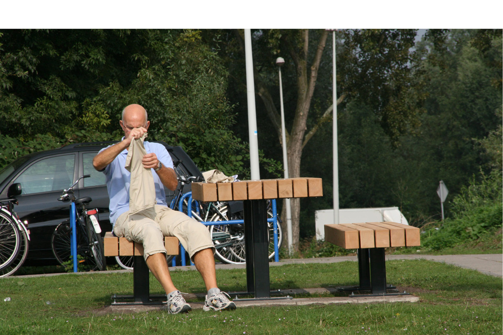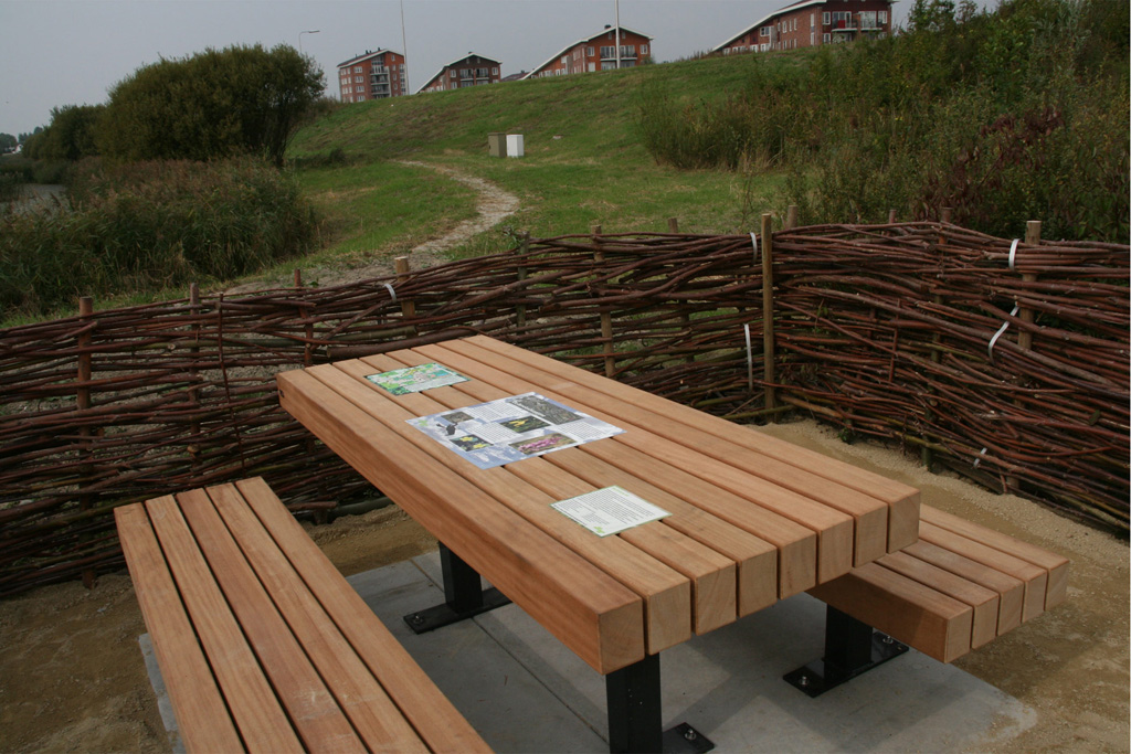 Iedere picknicktafel is twee meter lang en biedt plaats aan zes volwassenen. Het tafelblad is tachtig centimeter breed en de twee zitbanken zijn vijftig centimeter breed. Iedere set is gemaakt van hardhout en voorzien van het FSC-keurmerk. De tafels zijn verankerd op twee betonplaten. De uitstraling van de sets heeft stedelijke allure.