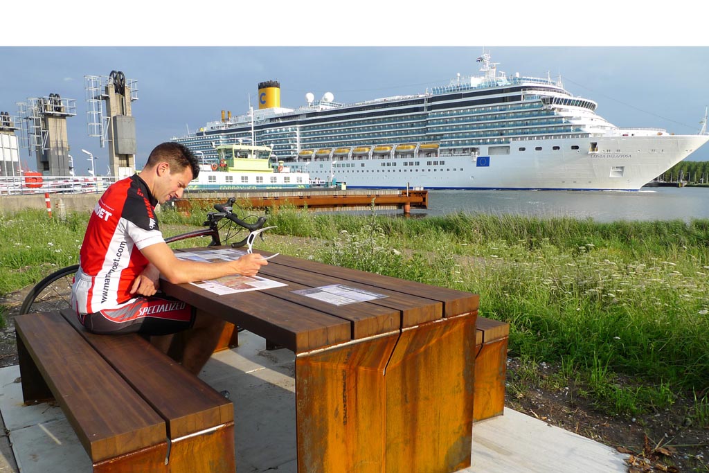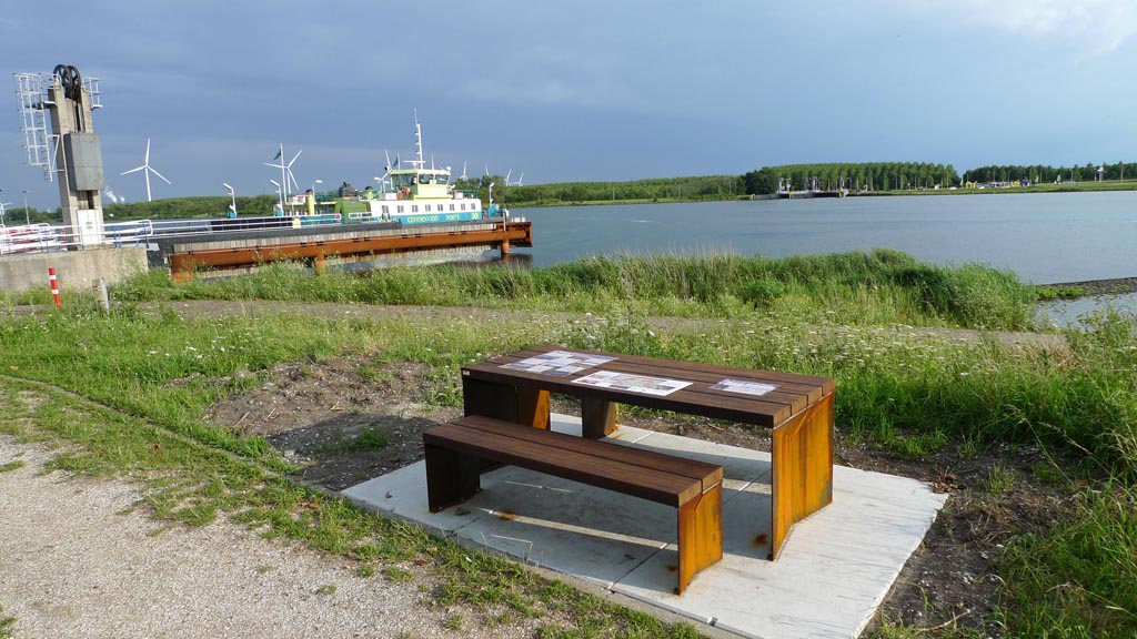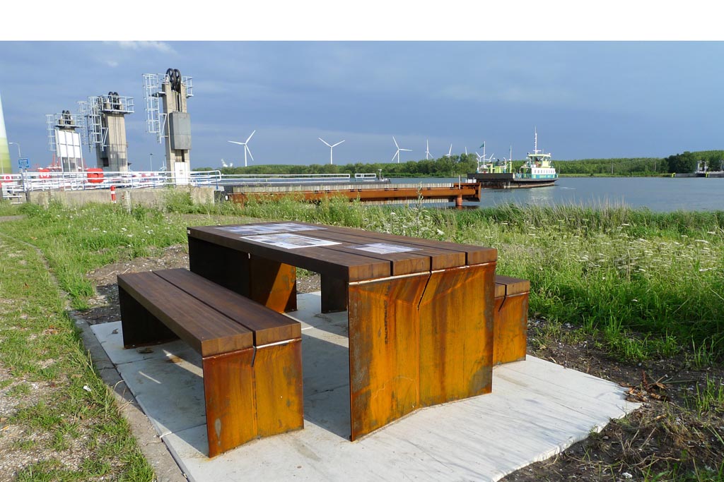 In opdracht van gemeente Zaanstad heeft TdH Spatial Concepts twee picknicktafels met informatievoorziening gerealiseerd bij Pontplein Buitenhuizen. Deze pont wordt door veel forenzen en recreanten gebruikt om het Noordzeekanaal over te steken. Omgeven door natuur, historie, havens en sluizen biedt het pontplein een diversiteit aan panorama’s. Een mooie plek waar recreanten kunnen genieten van het uitzicht! De tafels en banken zijn gemaakt van FSC gecertificeerd beukenhout en cortenstaal. Zij ogen daardoor stoer en zijn zeer sterk. De uitstraling refereert aan de scheepsbouw en ruigte van de omgeving. Zittend aan een van de tafels zie je vele cruise- en containerschepen voorbij varen.